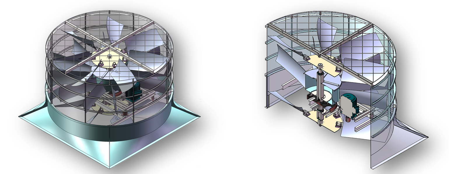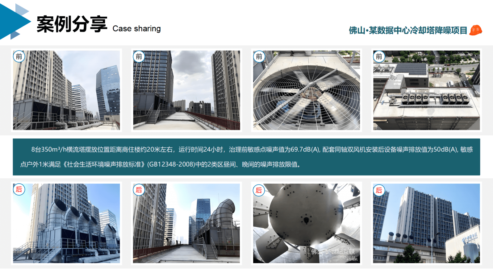冷卻塔噪聲明顯來源于冷卻塔動力系統,將原有進出風口消聲器拆除,把冷卻塔原單葉輪的3353mm風機升級至同軸多層風葉超靜音風機,實現風機超低轉速下輸出冷卻塔所需風量。